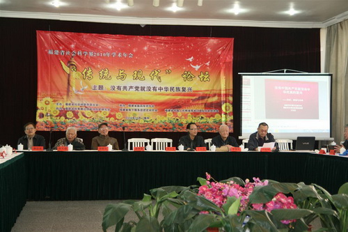 根据论坛方案的计划安排,我会联同闽粤赣、南下服务团、长江支队历史研究会,于十月二十八日下午2时30分,在福州市白龙路白龙宾馆召开了“传统与现代”分论坛(主题:没有共产党就没有中华民族复兴)第一次研讨会。参加研讨会的有四个研究会的23位老同志,四个研究会的58位“红二代”会员,还有省高校等三个思想政治工作研讨会、省中医药大学、省农林大学等单位的9位教师和大学生。共计参会人数90人。