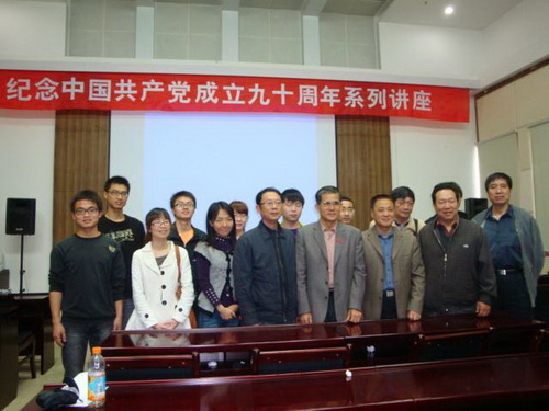 2011年5月6日下午,为纪念建党九十周年,应福建农林大学马克思主义学院邀请,省新四军研究会副会长王东炎到院作了题为“中国共产党与中华民族复兴”的讲座报告。讲座对象都是学院在校硕士研究生和他们的导师,共六十三人。讲座由学院院长、教授郑庆昌博士生导师主持。