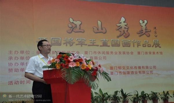 2012年7月20日上午,由福建省新四军研究会新一代委员会、厦门市休闲服务业发展协会、厦门崇荣美术馆主办的——庆祝中国人民解放军建军85周年,开国将军王直《江山秀美》国画作品展开幕式在厦门市博物馆举办。参加开幕式的来宾有:省人大常委会原主任袁启彤,陆军第31团军副政委张正钧,厦门市仲裁委员会主任汪兴裕,省政协提案委副主任林鸿坚,省新四军研究会副会长王东炎,省环保局局长廖屹,省闽粤赣边历史研究会会长魏晓光,省闽粤赣边历史研究会秘书长魏晓流等,新四军研究会新一代会员、厦门市、漳州市有关单位的领导共200余人参加了开幕式。