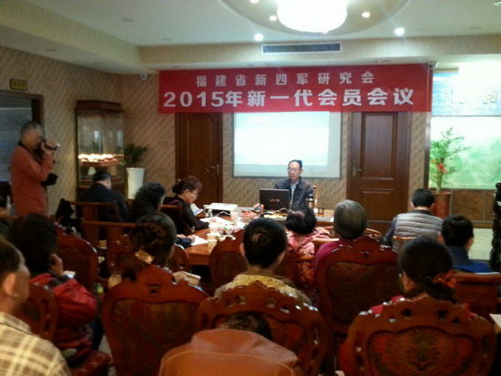 3月21曰上午,福卅铜盘路观韵茶庄内,结彩挂幅。一幅展示“福建省新四军研究会2015年新一代会员会议”大红横幅,热烈宣示了会员会议的隆重召开。